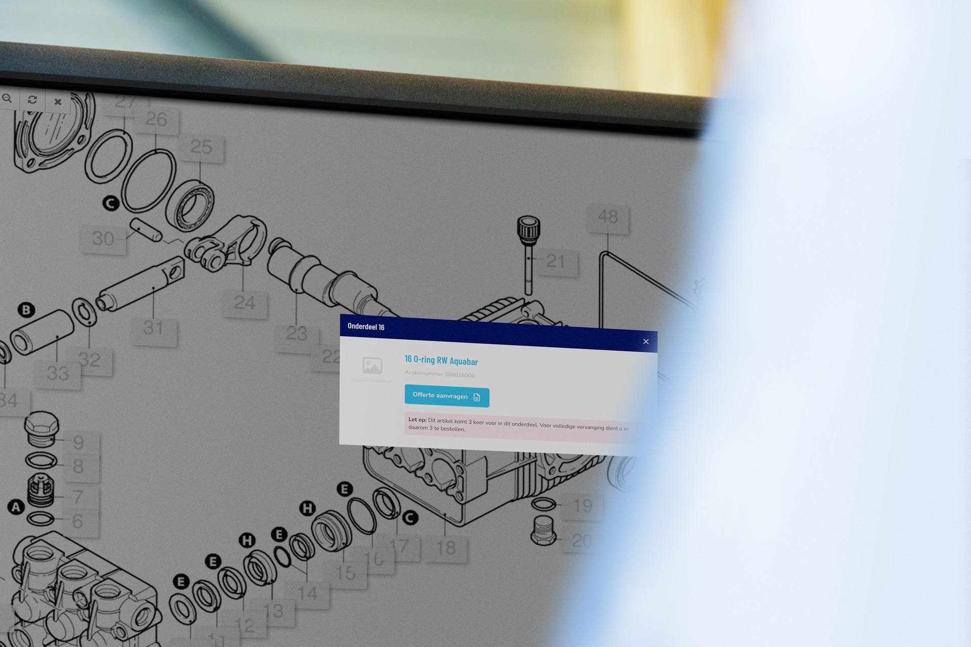 Voordat we begonnen zijn met de realisatie van het project, hebben we samen met Waterkracht en de klanten van Waterkracht in kaart gebracht wat de wensen zijn en waar de knelpunten zitten in het bestelproces voor onderdelen. Zo moest het bestellen middels exploded views gebruiksvriendelijk zijn en naadloos aansluiten op het bestaande bestelproces binnen de webshop van Waterkracht.