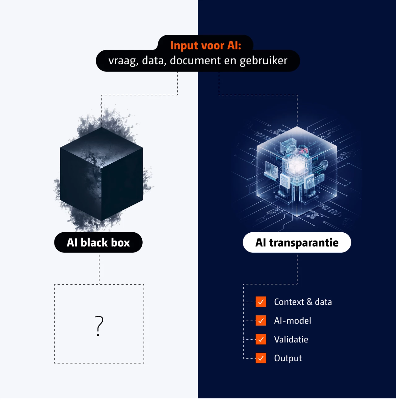 In een losse toepassing is dat vaak geen probleem. Maar zodra een agent onderdeel wordt van een proces, veranderen de eisen. Dan wil je herleiden waar een antwoord vandaan komt, waarom het gegeven wordt en wat er gebeurt als de context verandert.