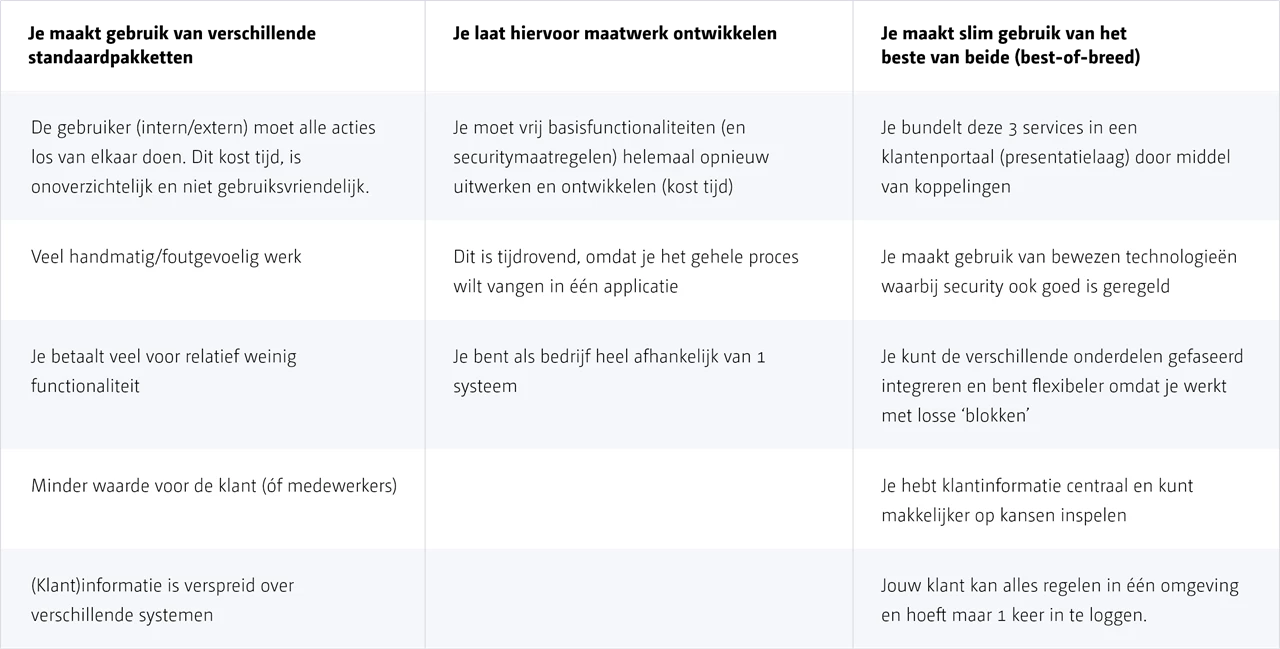 - Oplossing: combineer softwarepakketten met maatwerk software voor de beste beleving intern én extern